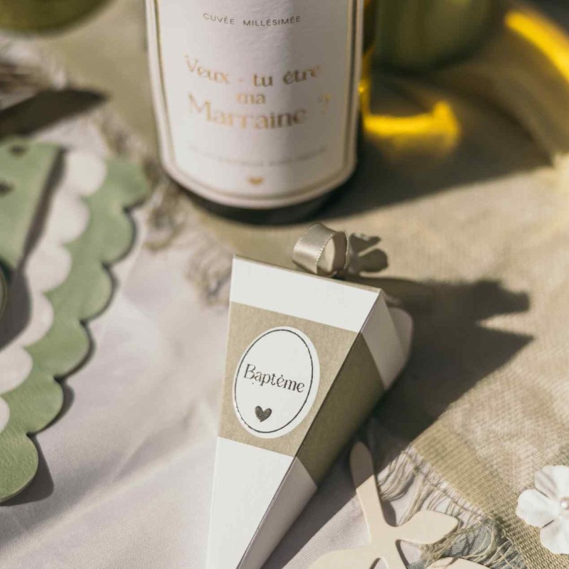 Des contenants berlingot élégants pour un baptême raffiné