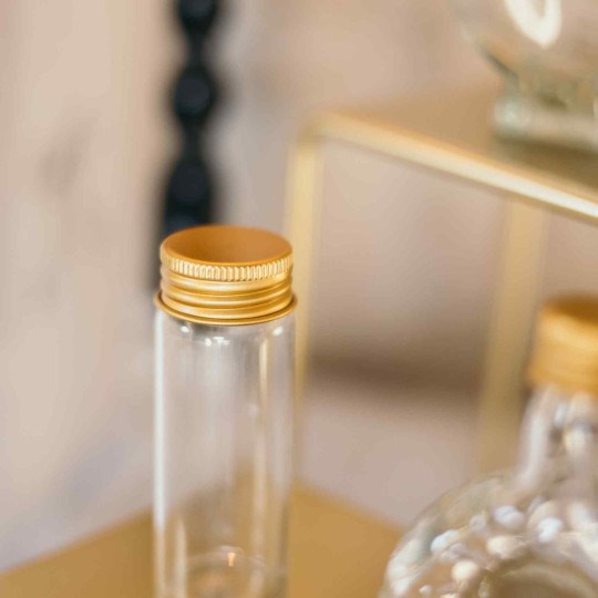 Tube à Essai Verre avec Bouchon en Métal Or Ø3x8cm en Display Box