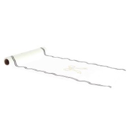 L’alliance du blanc lumineux, du noir profond et de touches dorées crée un équilibre parfait entre modernité, élégance et caractère. Grâce à son format 28 cm x 5 mètres, il permet d’habiller plusieurs tables ou une grande table de réception, tout en conservant une présentation soignée et harmonieuse. Un design graphique blanc, noir et or intemporel Le trio blanc, noir et or est un grand classique du design haut de gamme. Sur ce chemin de table, il devient un véritable élément décoratif central, capable de structurer l’espace et de mettre en valeur : - la vaisselle - les centres de table les bougies et accessoires dorés